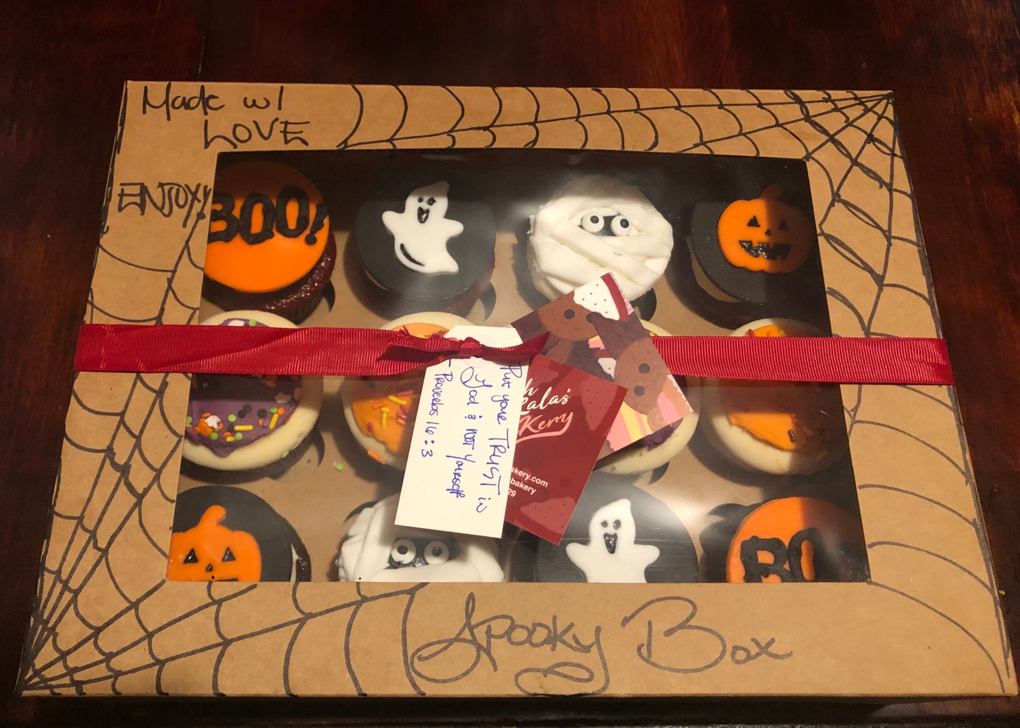 a box of yummy, deliciously, decorated cupcakes (12ct.) for any spooky event or gathering. This box is perfect for all ages as long as its in a place with casper and some friendly ghost ;)